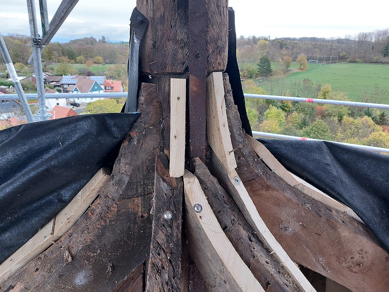Zimmererarbeiten am Kirchturm