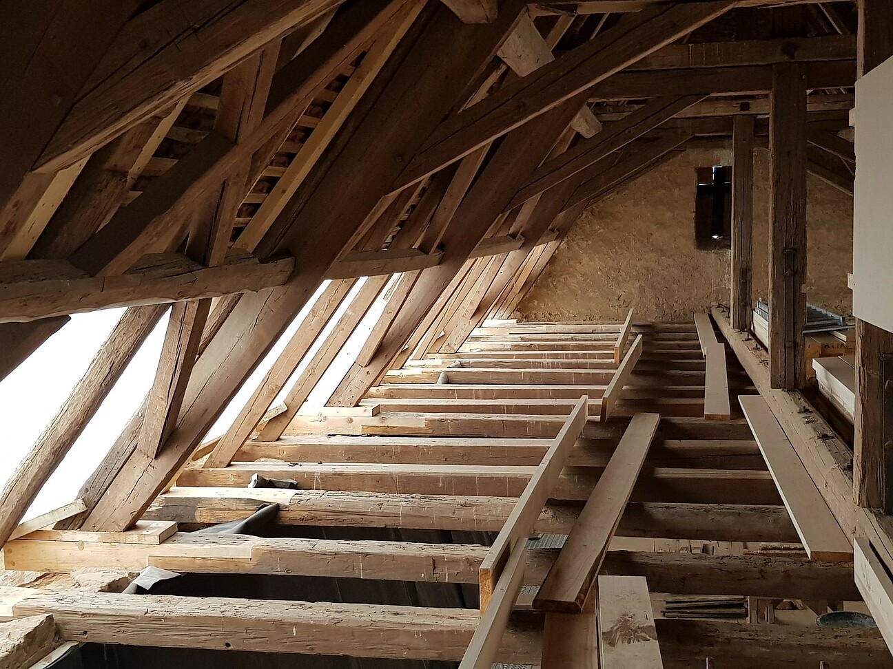 - Reinigung der Bestands-Deckenbalken durch Abbürsten