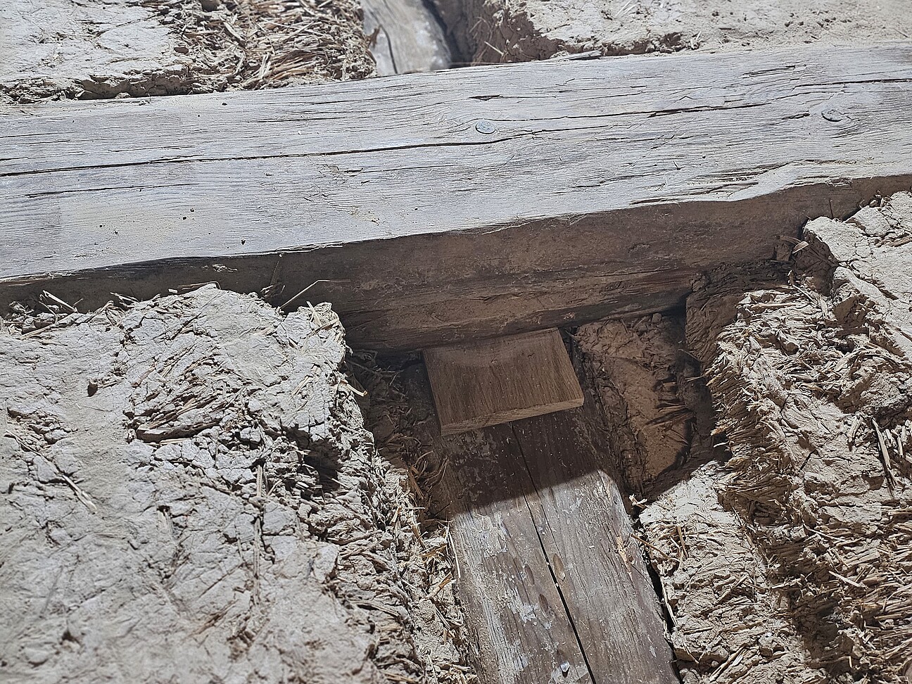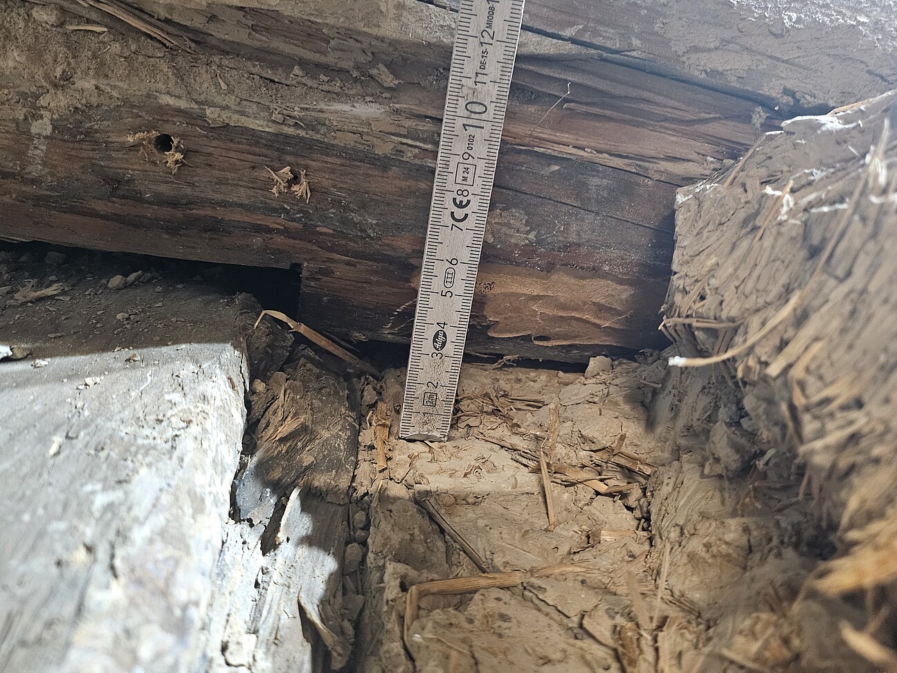 - Stabilisierung des Fachwerks zur Minimierung weiterer Materialbewegungen: Unter- und Ausklotzungen von Spaltbereichen; Verschraubungen