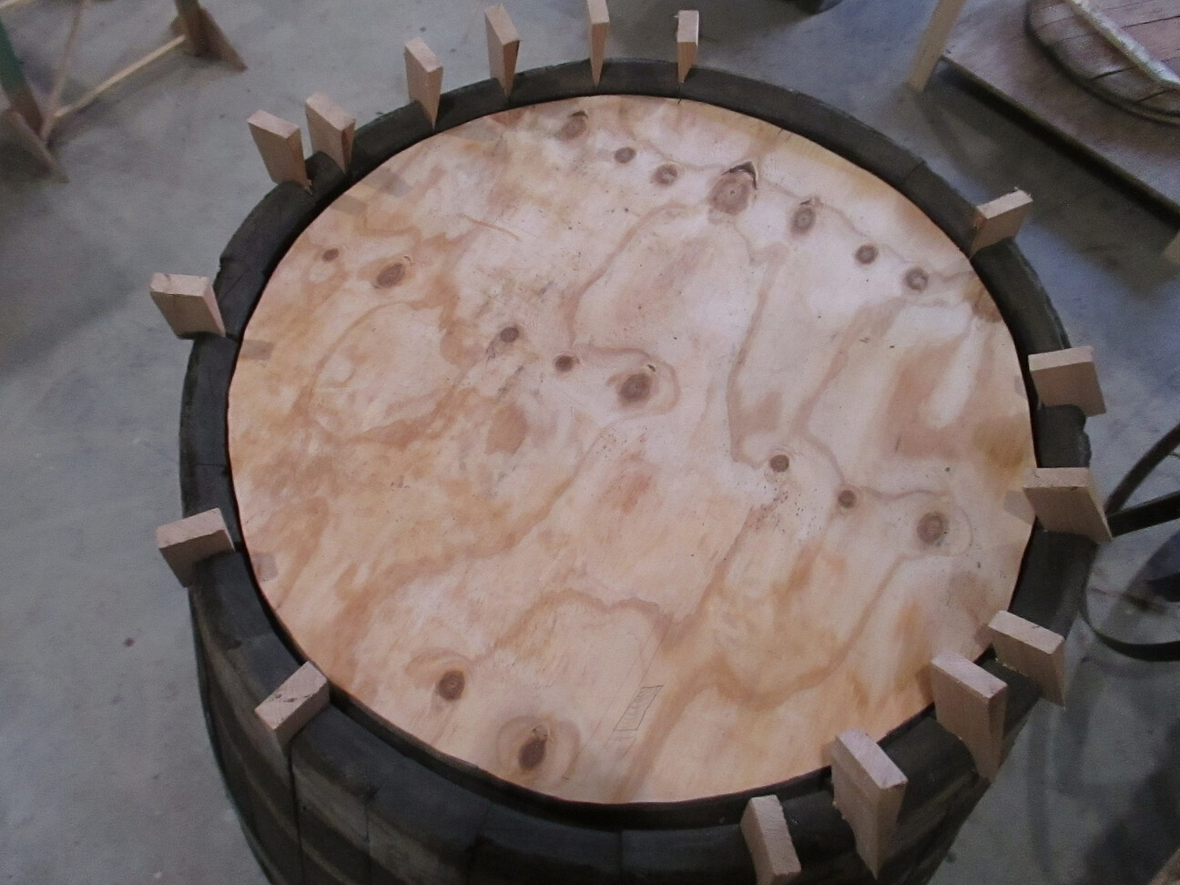 - Anstrich der Dauben, der Fassböden und -deckel mit einer Bierlasur