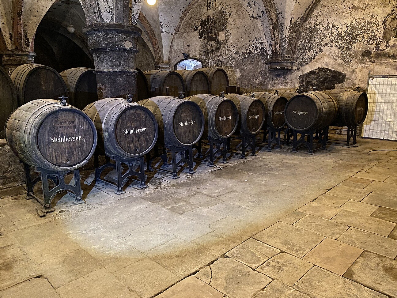 - Abbau des großen Weinfasses aus der Fraternei; Wiederaufbau im Cabinetkeller Nord