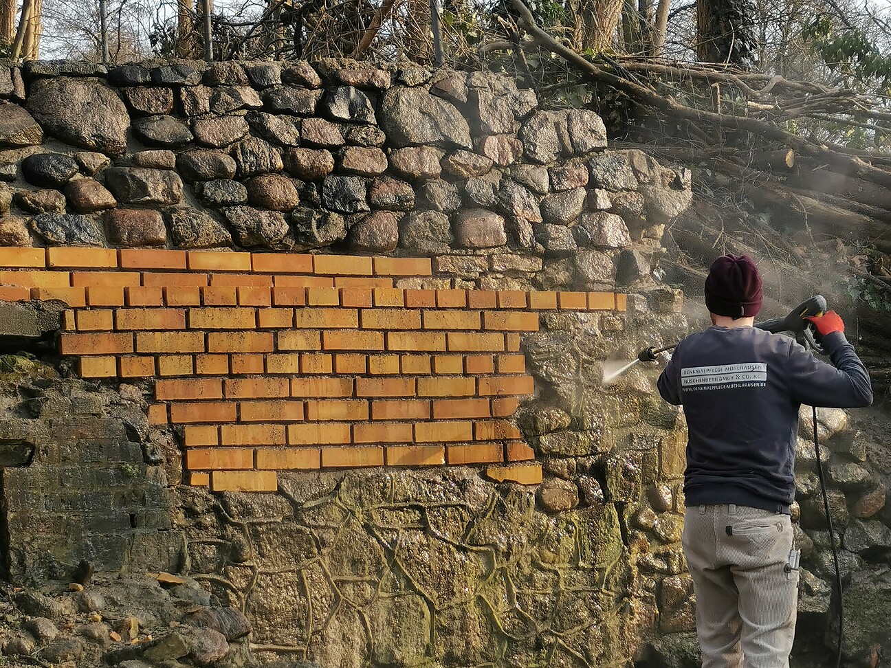 - Reinigung der Maueroberflächen mittels Hochdruckreiniger