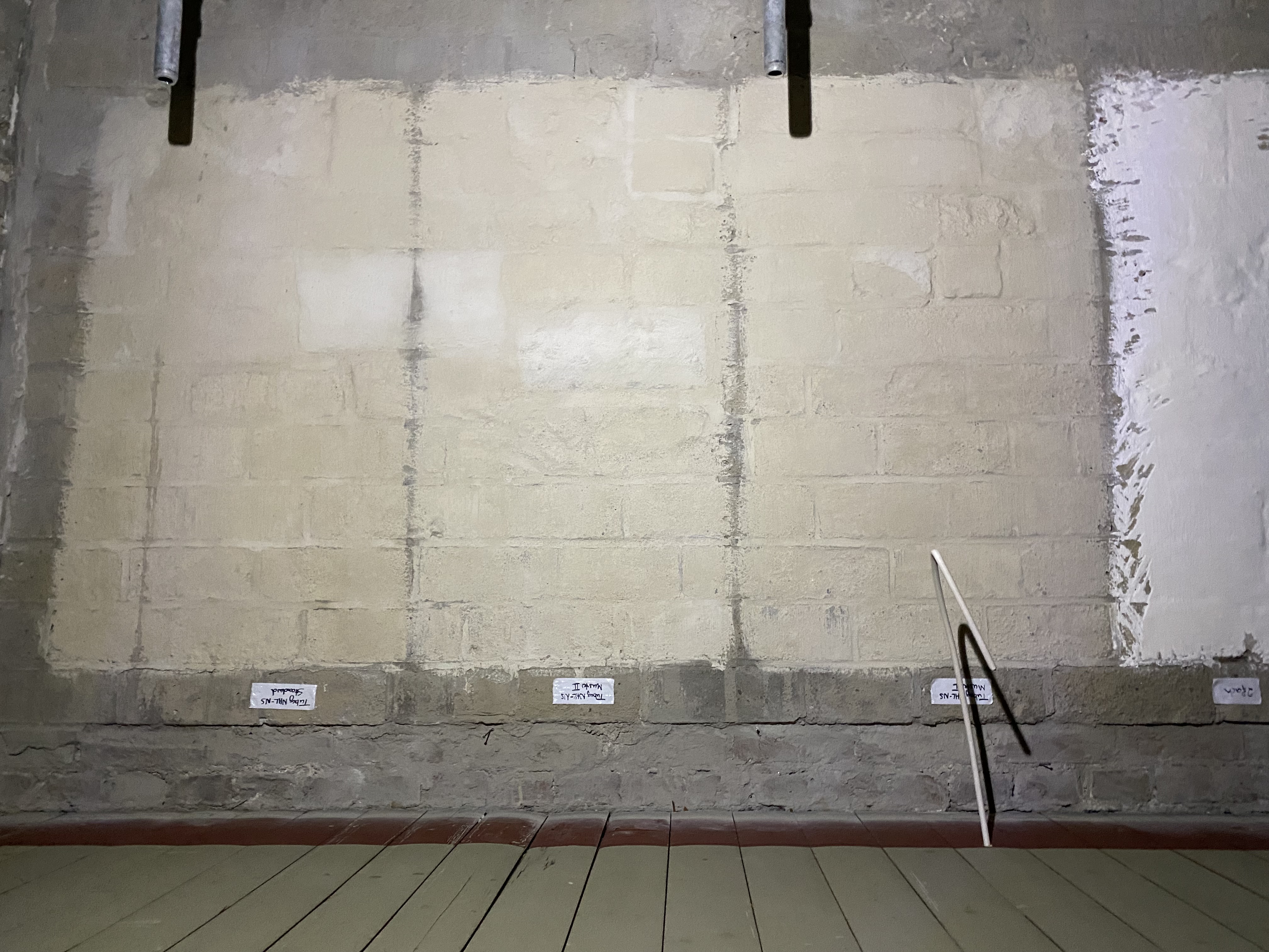 - Auftrag einer Spezialrezeptur im salzbelasteten Sockelbereich aller Wandflächen