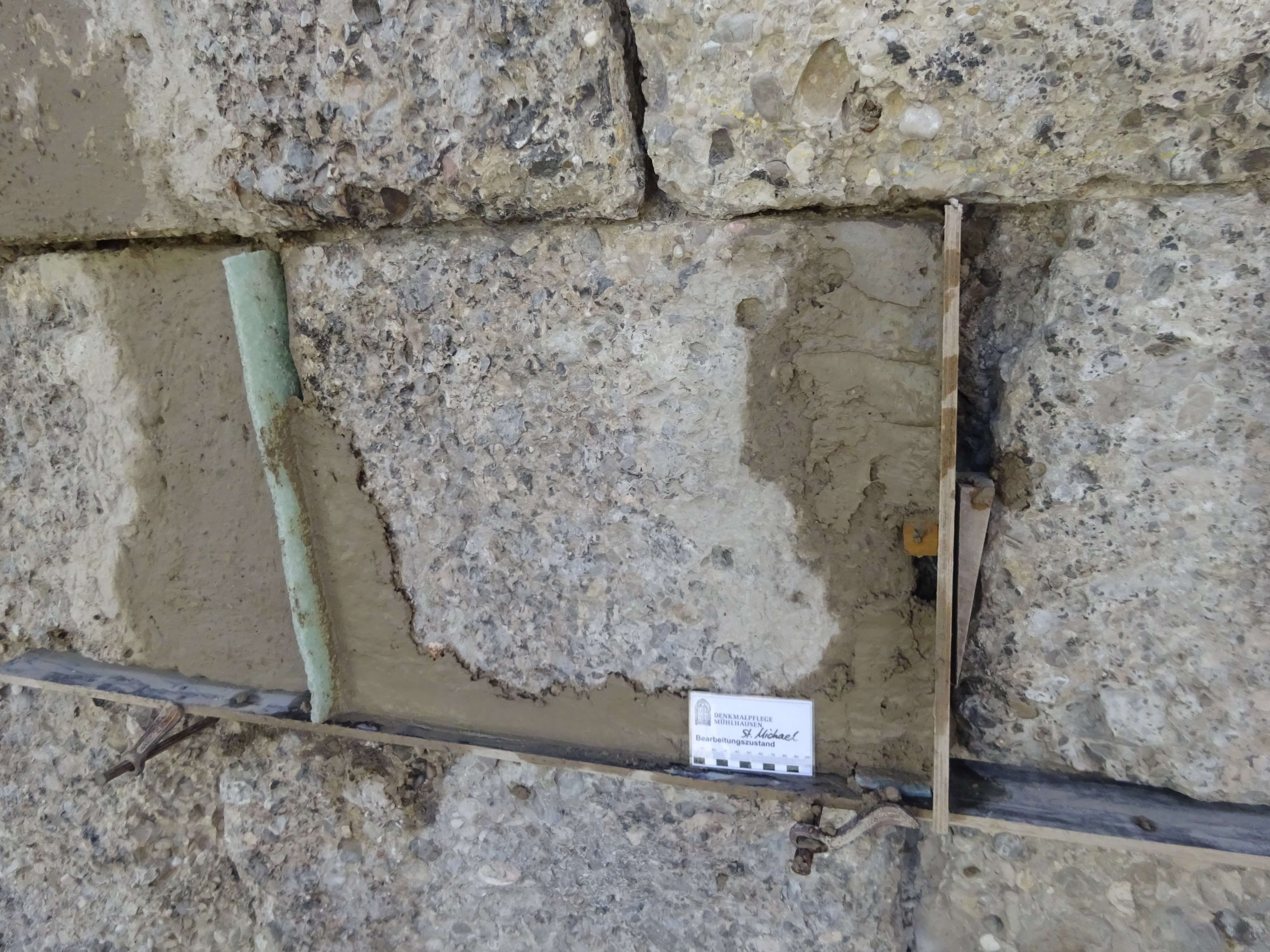 - Konservatorische Arbeiten: Festigung von Fugenflanken durch Tränkung mit Syton-Lösung