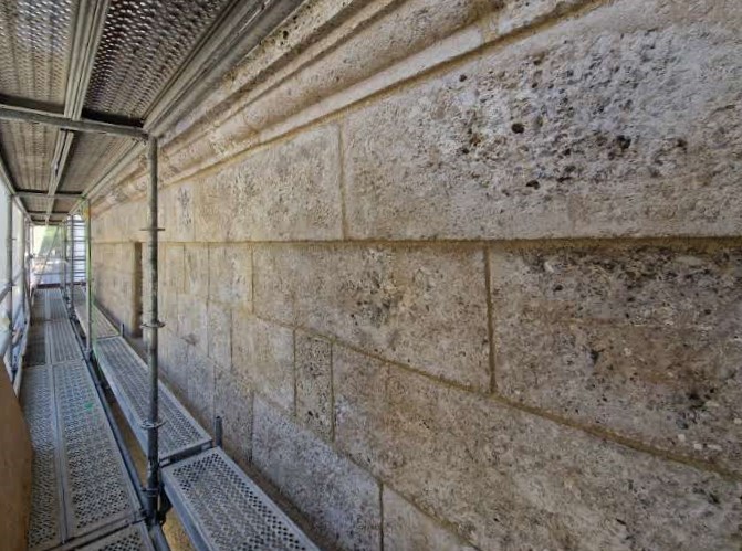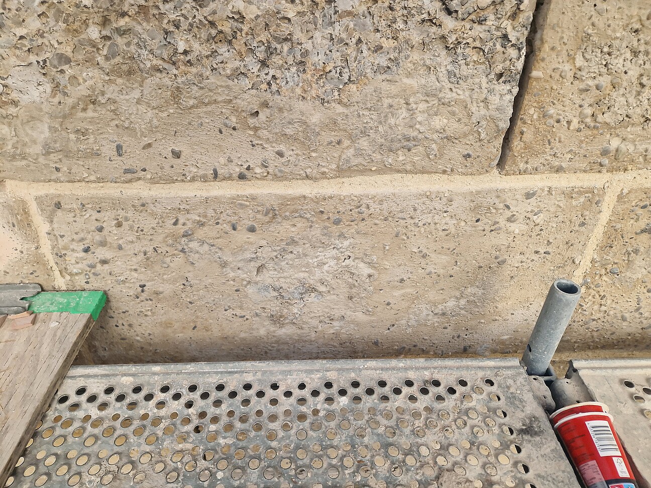 - Fugeninstandsetzung: Ausräumen salzbelasteter Mörtel, Neuverfugung mit Spezialmörtel (Baustellenmischung mit Romanzement)