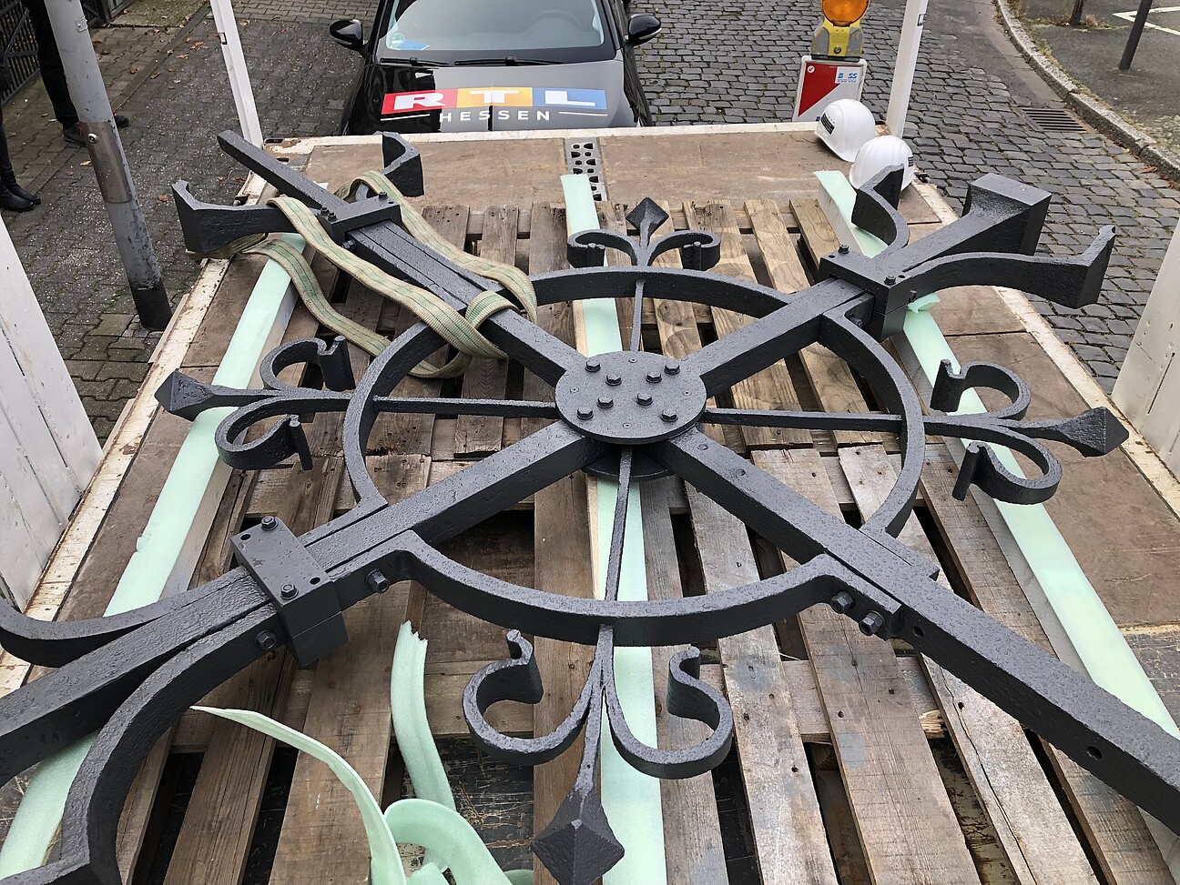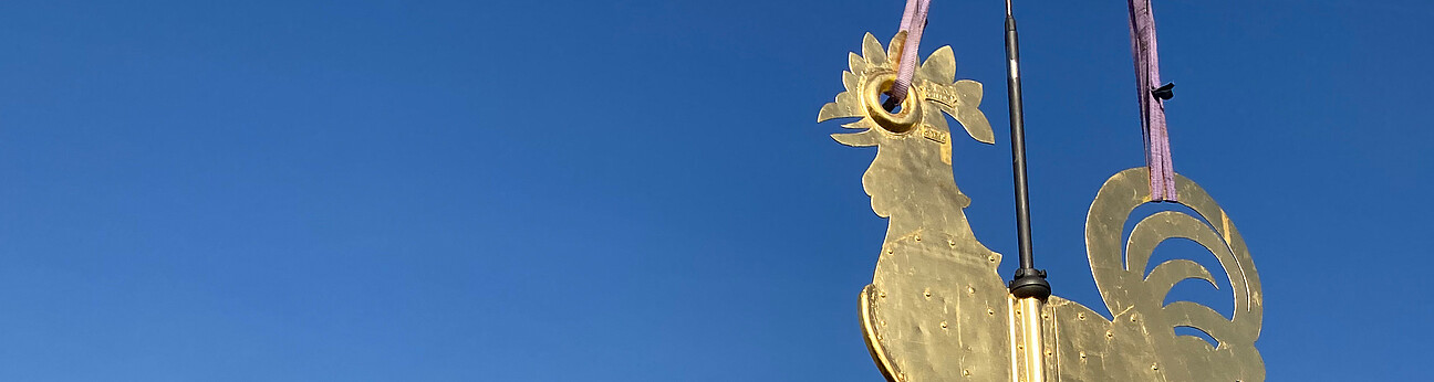Instandsetzung des schmiedeeisernen Turmkreuzes mit Wetterhahn, Kupferkugel und Schaft