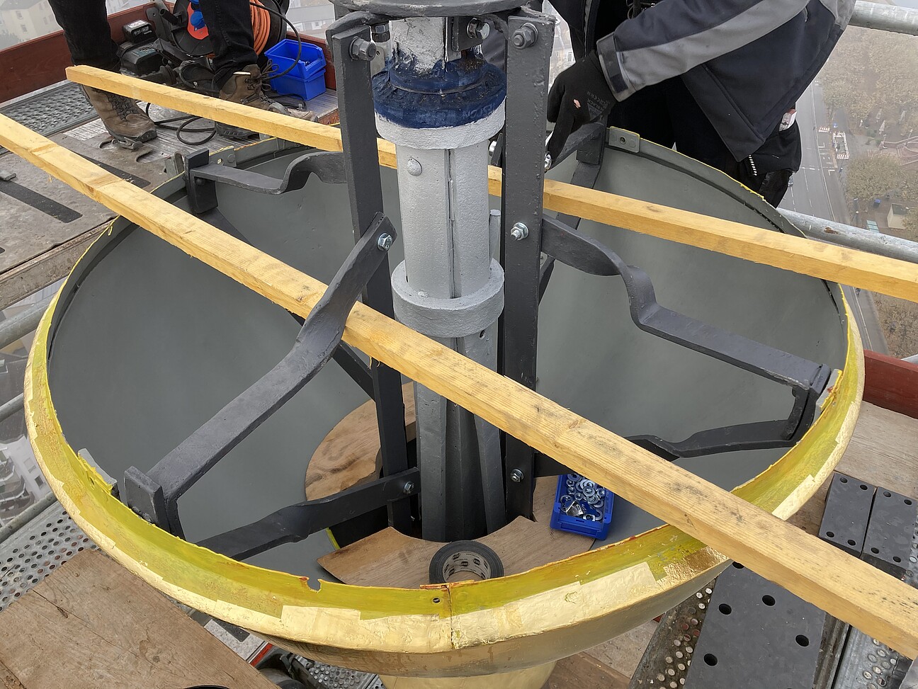 - Abheben des Turmkreuzes; lösen aller Verbindungen und Demontage in die Einzelteile