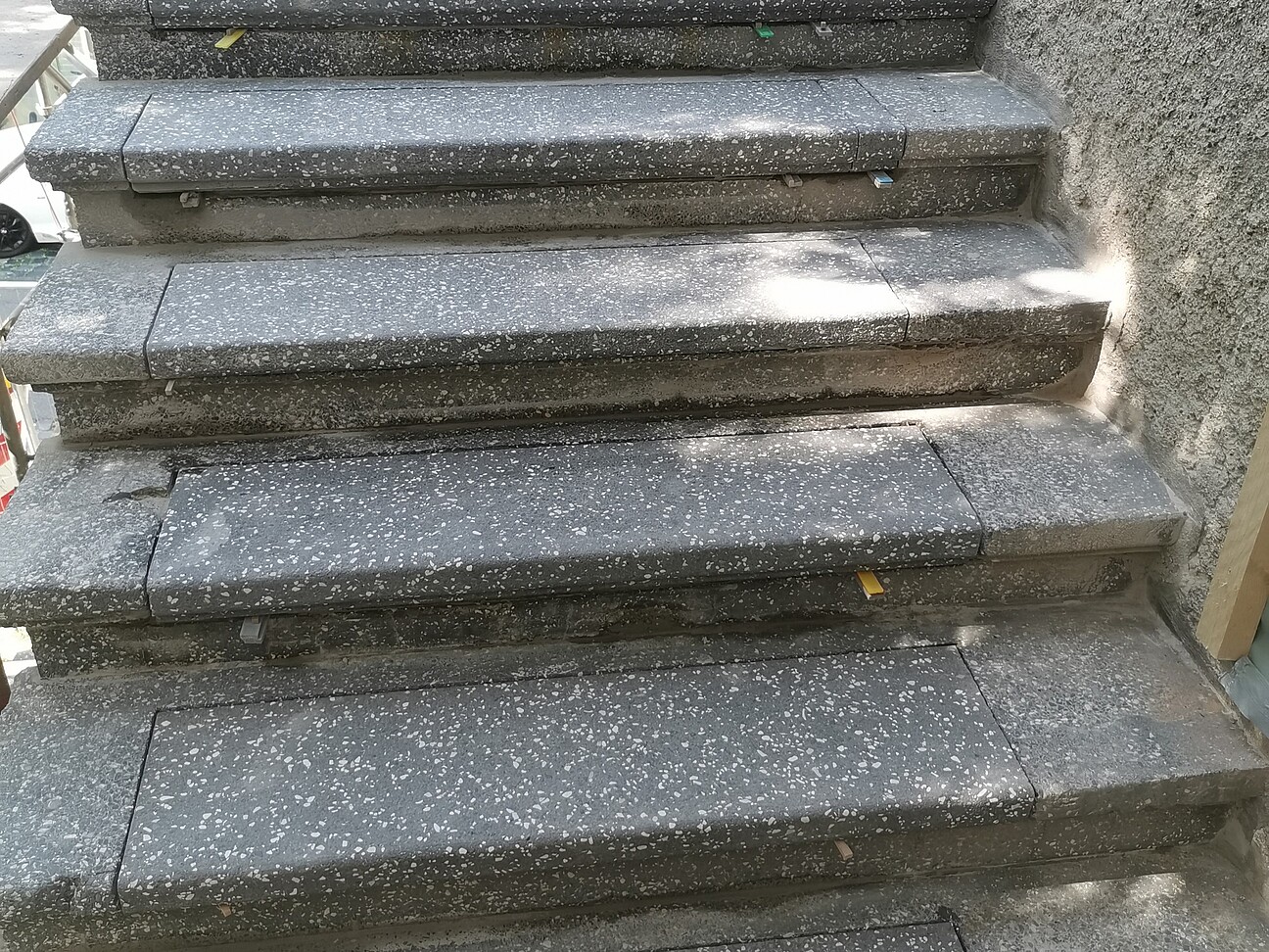 - Steinaustausch: Ausbesserung abgenutzter Bereiche an den Steinstufen durch Vierungsplatten sowie Neuversatz verschobener Stufenköpfe; Erneuerung der Altergänzungen an den Steinstufen durch Vierungsplatten sowie an den Podesten durch Steinergänzungsmasse