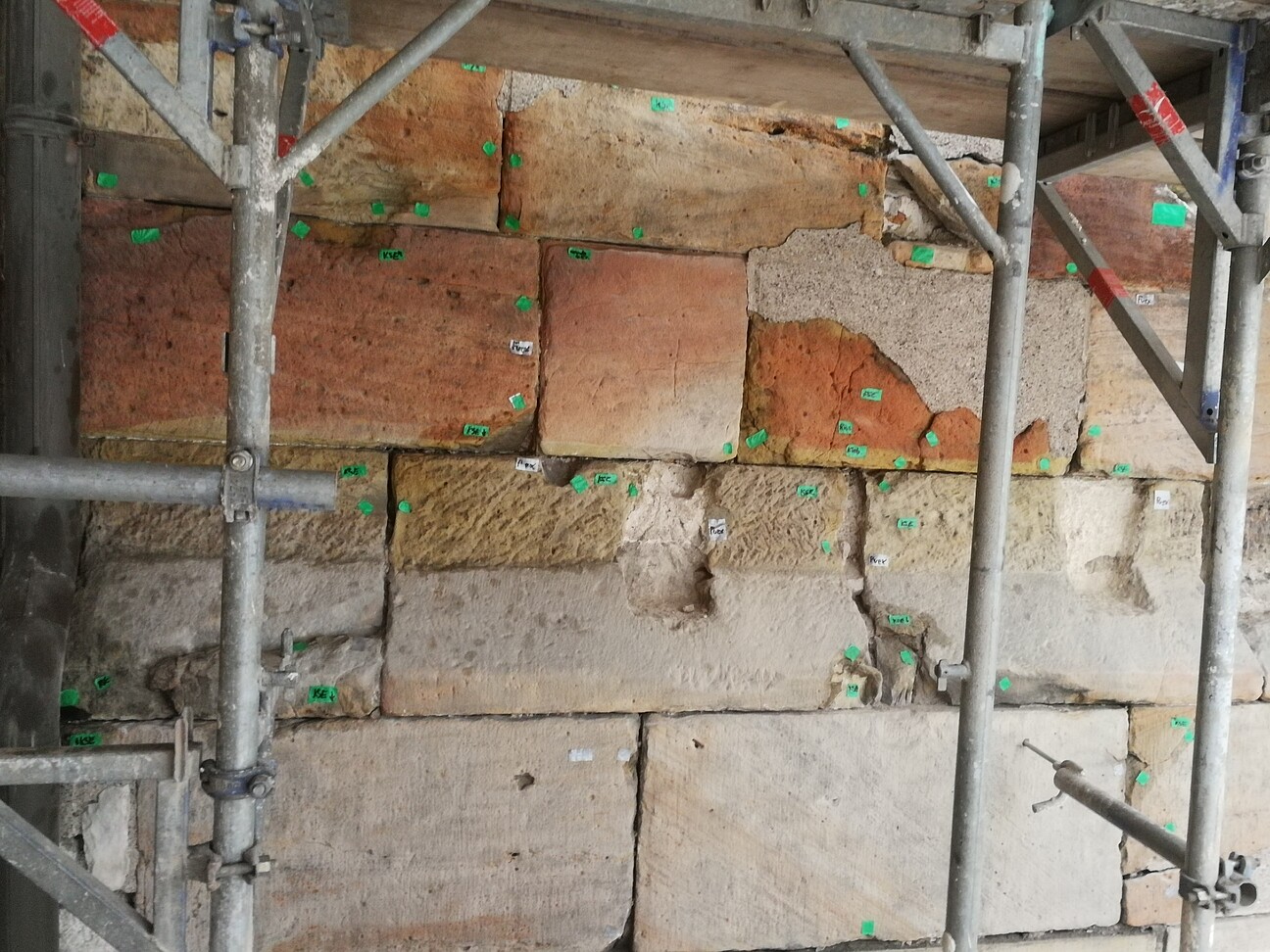 Steinkonservatorische und -restauratorische Maßnahmen am Mauerwerk der Nordfassade